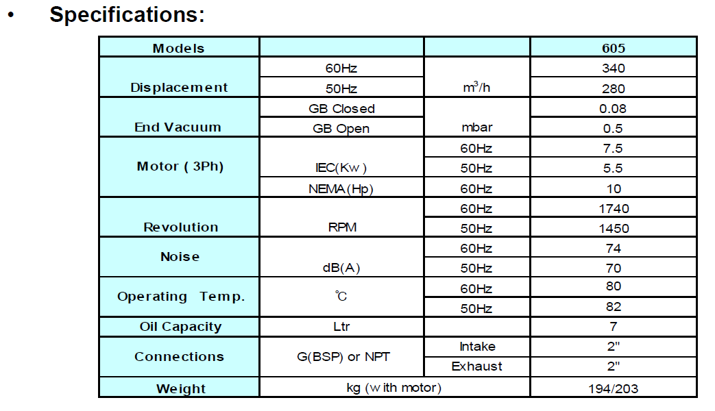Standard Equipment: Composite Vane, Wire mesh Inlet Filter Screen, Vibration Isolator, TEFC