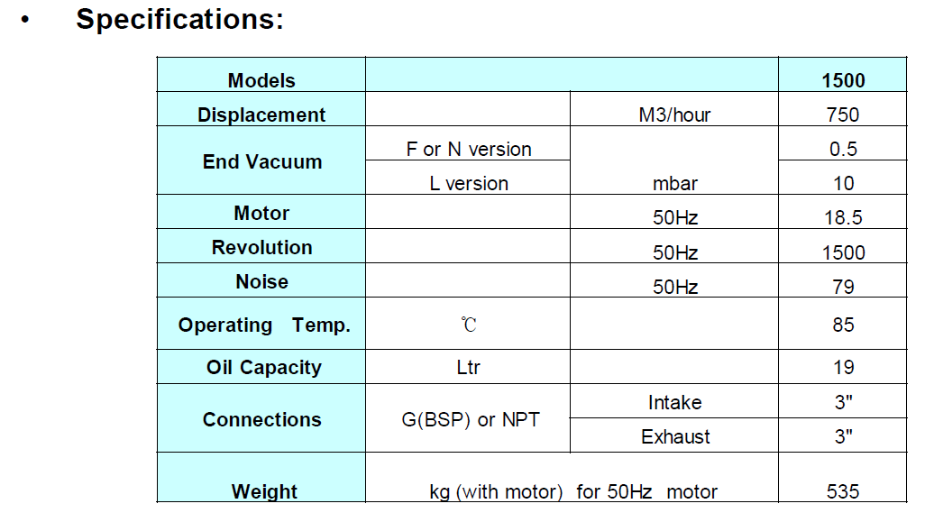 Standard Equipment: Composite Vane, Wire mesh Inlet Filter Screen, Vibration Isolator, TEFC
