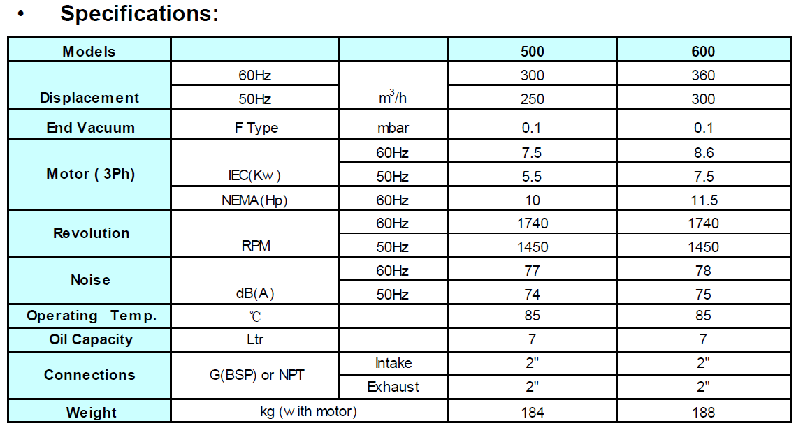 Standard Equipment: Composite Vane, Wire mesh Inlet Filter Screen, Vibration Isolator, TEFC